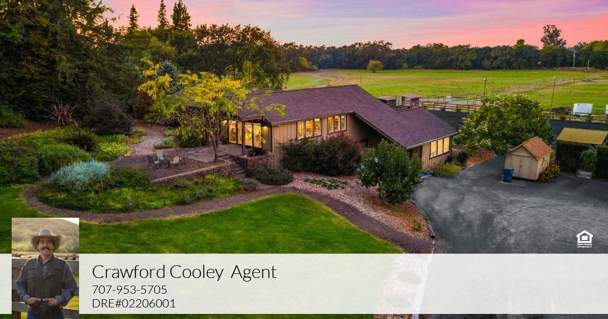 Hidden at the end of a private road in West Santa Rosa wine country lies a beautiful 23.89+/- acre (2 parcels) equestrian paradise with direct access to Santa Rosa Creek Trail. Permitted income producing equestrian boarding facility includes a 100'x190' lighted arena & 72' round pen, both with all weather shredded rubber/sand footing, redwood barn with 24 12'x18' rubber-matted stalls, 12 with attached 12'x24' runs, tack & grain storage, covered tack up area and vet/farrier paddock. Second barn for hay/shavings/equipment, 9 paddocks with shelters, 5 irrigated pastures, turnouts, hot water wash rack, automatic waterers & chicken area. Access to reclaimed water to irrigate pastures reduces hay costs & allows lush year-round grazing. The private sunny home features tall beamed ceilings, expansive views of mountains, pastures, vineyards, sunrises & sunsets. Updated roof, siding, windows, kitchen, decks and primary suite along with generator hook up, well and septic upgrades. A lower-level studio with kitchenette, separate entry, and patio offers flexibility for family or staff. Enjoy decks, views, wrap around water-wise veggie/flower gardens, and nearby access to Sonoma wine country, farm-to-table lifestyle, coastal beaches, park trails, airport, and country club.